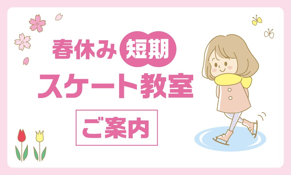 新着情報2026.02.09春休み短期スケート教室の申し込み受付スタート! 2026年春休み短期スケート教室の申し込み受付を開始いたしました。 日程 2026年 3月29日(日)・30日(月)・31日(火)の3日間 受付期間 2026年2月9日(月)~3月27日(金) 詳細は下記ページをご確認ください。 春休み短期スケート教室を申込む