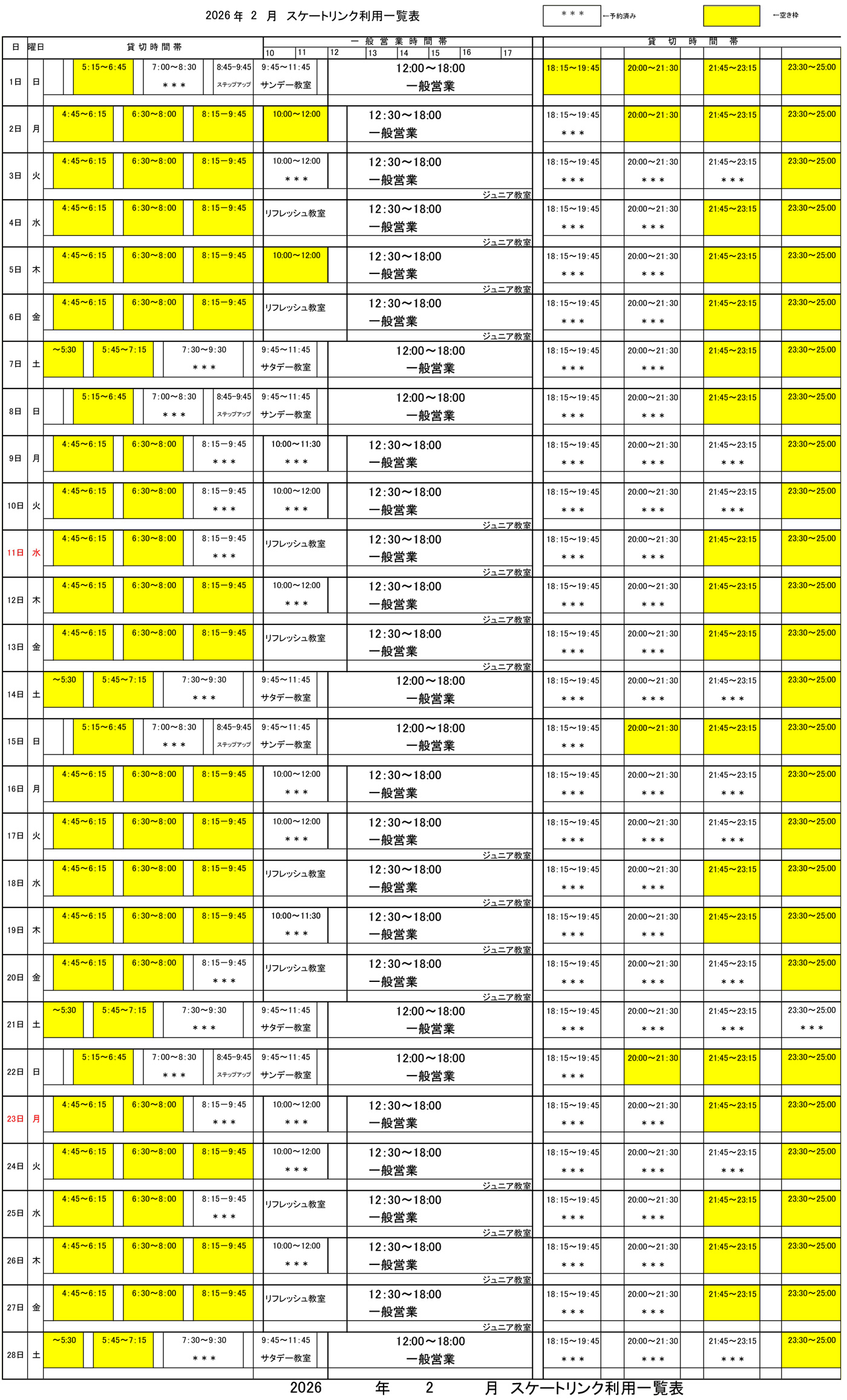 競技(貸切) 専用使用(貸切)のご案内 貸切カレンダー 12月 1月 2月 ダウンロード(PDF) ダウンロード(PDF) ダウンロード(PDF) 貸切利用申込書ダウンロード 貸切利用申込書(PDF) 貸切利用申込書(Excel) 専用(貸切)利用料金 メインリンク30分11,000円90分33,000円ホッケーゴール/枠2,000円ホッケータイマー/枠2,000円ショートトラックマット/枠2,000円電光掲示板/1試合2,000円放送設備/枠2,000円電源/口100円 お申込み方法 貸切使用要領をご確認の上、下記のお電話にてお申込み下さい。 貸切使用要領(PDF) お電話 0798-41-3898 受付時間:10~18時(土日祝も可)